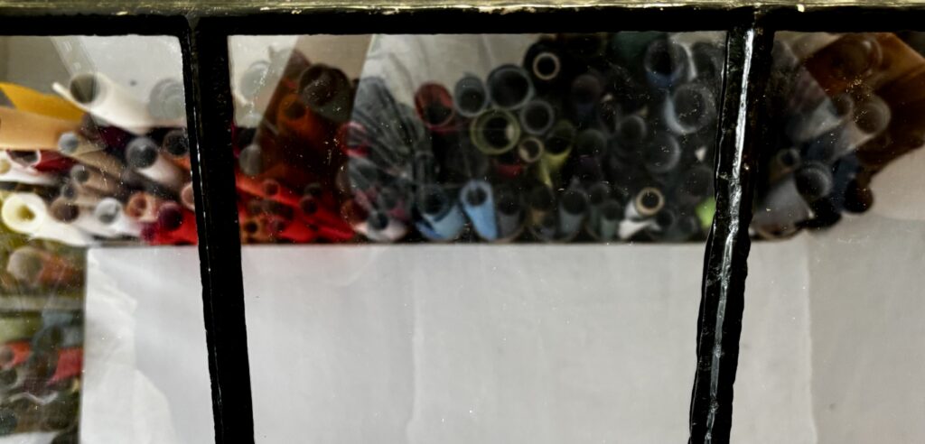 Eine Vielfalt großer Auswahl von Geweberollen und Papierbögen bereichern die kreativen Gestaltungsideen und lassen, so manch eine Papiergeschichte entdecken. Zu fast jedem Papier, erzählt Frauke Grenz eine Geschichte. Der Humor und die Dynamik in der offenen Werkstatt, die in regelmäßigen Abständen stattfindet, lassen den Alltag zurückfallen und die Laufrichtung des Papiers bekommt volle Aufmerksamkeit. Die Geduld und Aufrichtigkeit begleiten viele Täler, um am Ende des schöpferischen Tuns ein Lachen der Freude, zu ernten.